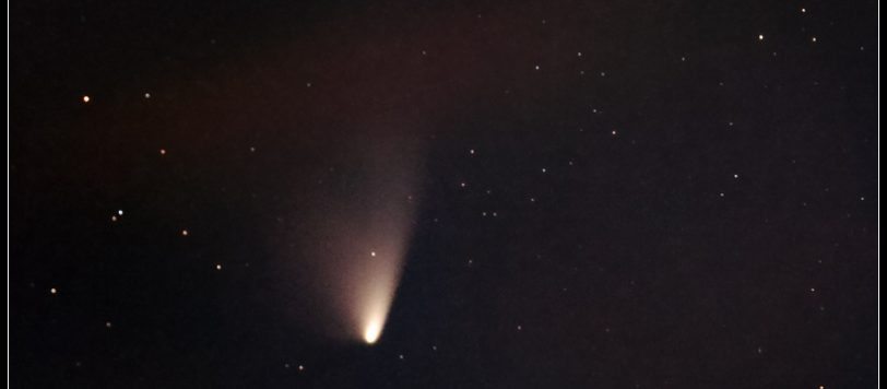 Leider ließen die Wolken nur kurze Zeit eine kleine Lücke um den Kometen abzulichten. Es war eisig kalt und wehte zum Teil heftig. Mit dem Feldstecher war der Schweifstern ein schönes Objekt, mit dem bossen Auge zwar auszumachen, aber doch sehr schwach. Ein Vereinskollege schätzte die Helligkeit auf 3 mag.