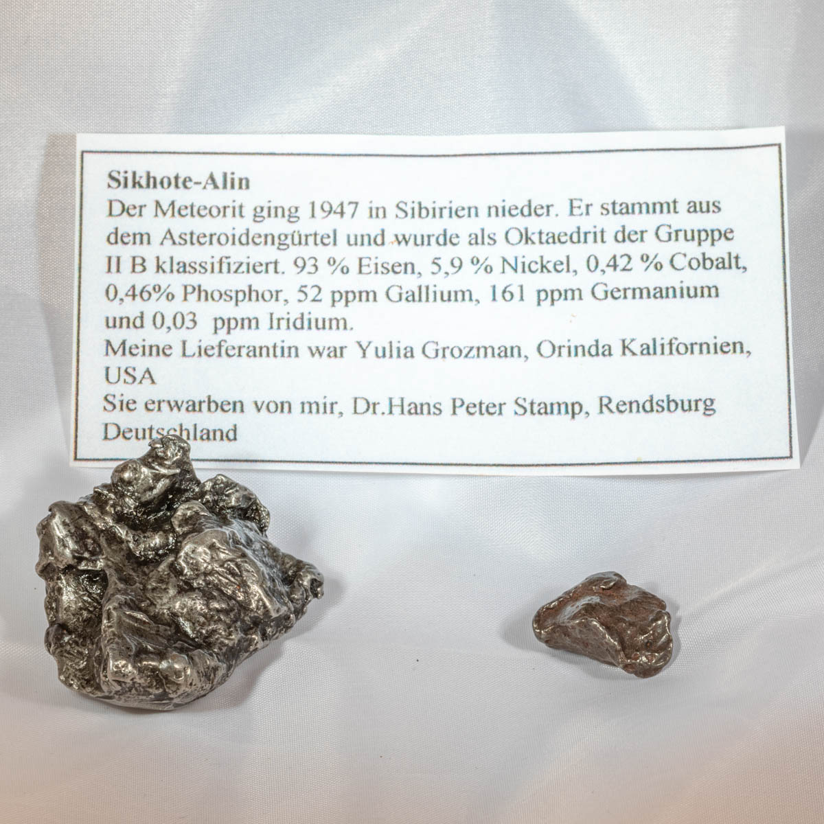Ich kaufte zwei kleinere Stücke bei Dr. Stamp in Rendsburg.